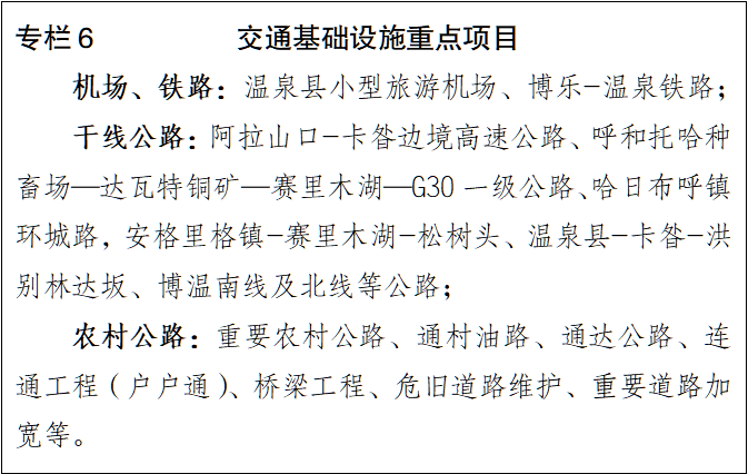 ——建设博格达尔镇—哈日布呼镇—博乐市的交通、物流、产业发展带;