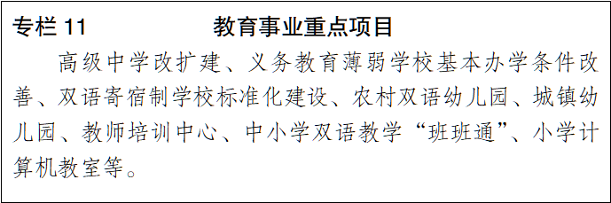 扎实推进双语教育,加快普及农村学前三年双语教育。加快双语师资队伍建设,强化双语教学能力培训,提高双语教育教学质量。到2020年,实现双语教育的有效衔接,确保少数民族学生基本掌握和使用国家通用语言文字。