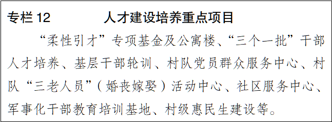 以“九通、九有、九能”为主要内容实施整村推进工程,加强贫困村水电路网等基础设施建设,改善就业、就医、就学等生产生活条件,实现贫困地区基本公共服务均等化。实施脱贫攻坚行动计划路线图管理,加大财政专项扶贫资金投入力度,积极开拓扶贫开发资金渠道,确保政府扶贫投入力度与脱贫攻坚任务相适应。农业综合开发、农村综合改革转移支付等涉农资金一定比例用于贫困村,各项惠民政策、民生项目和重点工程最大限度向贫困村、贫困人口倾斜。