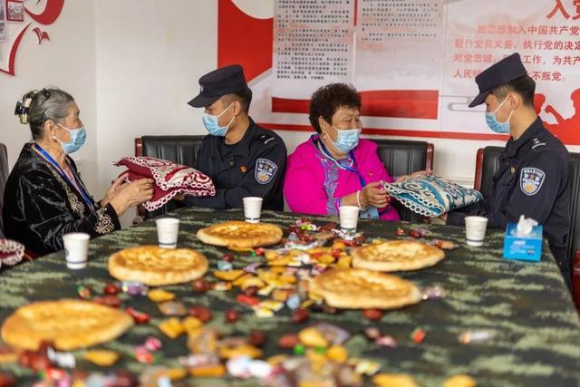 看到戍边民警坚守边境,“戍边妈妈”们很是心疼,便定时来到边境线,为大家送去亲手制作的塔巴馕、包尔萨克、酥油、奶疙瘩、熏马肠等特色美味食物。即使冬季山区气候恶劣,经常会有风吹雪,“戍边妈妈”们也无惧严寒,坚持进山送温情,一路上手和脸冻得通红,边境警务站民警和连队战士都很心疼,劝“妈妈”们不要再赶路进山,但“戍边妈妈”们说:“你们为了国家安宁远离父母、亲人,训练那么苦,就怕你们巡逻路上吃不好。我们帮不上什么大忙,只能帮你们做些好吃的,这是我们自愿的,也算是为国防事业做一点该做的事。”