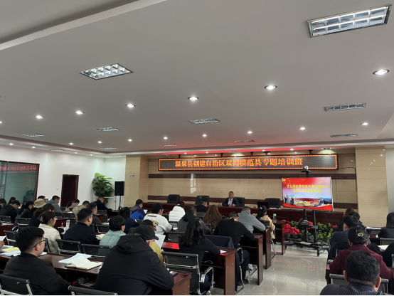 为全面提升我县双拥创建工作水平,进一步夯实创建自治区级双拥模范县基础工作,提高创建整体水平,4月20日上午,温泉县举办创建自治区双拥模范县工作专题培训班。县双拥成员单位、各乡镇(场)分管领导、双拥专干共计75人参加了此次培训。