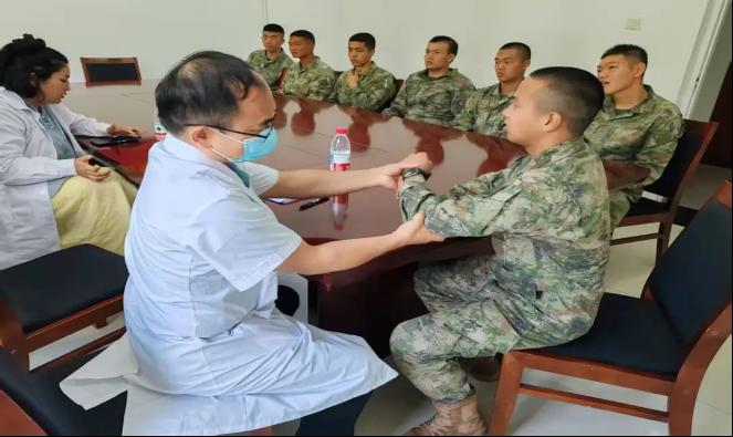 活动现场,乡卫生院邀请温泉县人民医院内科、外科、中医科等骨干医护人员组成医疗队。官兵们有序排队,接受血压、血糖测量、心肺听诊等基础检查,并针对训练中常见的肌肉劳损、关节损伤、皮肤问题等进行了详细诊疗和健康咨询。医护人员不仅细致解答健康疑问,还结合部队高强度训练任务特点,普及了训练伤防护、季节性传染病预防、科学饮食及心理调适知识,引导官兵树立科学健康观念,增强自我保健能力。