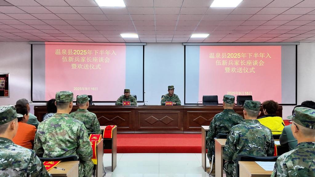 9月16日,温泉县2025年秋季新兵欢送会在温泉县训练中心隆重举行。一批优秀的温泉青年身着崭新军装,胸戴鲜红绶带,肩负着家乡人民的殷切期望与保家卫国的神圣使命,即将奔赴军营,开启崭新的军旅生涯。