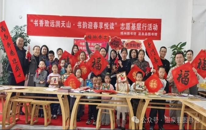 本次启动仪式内容充实、形式生动。现场不仅对年度阅读活动进行了规划发布,更融合了博州图书馆“书香致远润天山·书韵迎春享悦读”志愿基层行的优质资源,设立了“春风得意马蹄疾——丙午马年年俗及马文化展”、四季童读流动图书、非遗剪纸、书法送福、中国结编织、投壶祈愿等互动体验区,让读者在亲身参与中感受中华优秀传统文化的魅力,实现了书香与年味的完美交融。