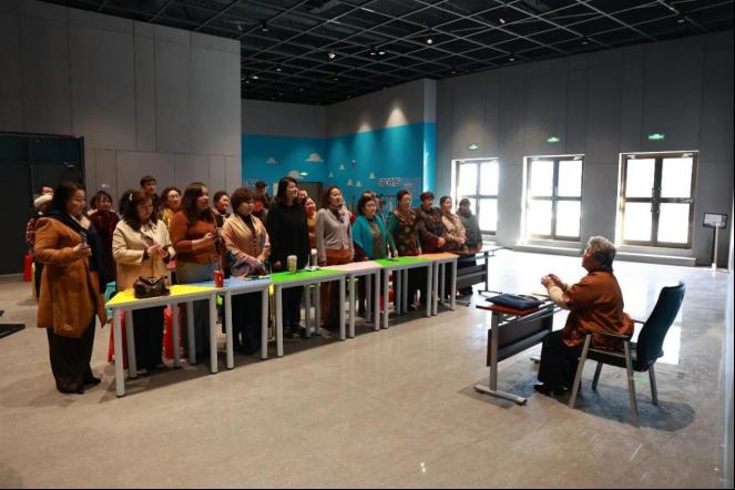 此次培训班聚焦非遗传承实效,有着明确且深远的目标,旨在进一步夯实基层民歌传承基础,培育本土非遗传承的生力军,让江古老的短调民歌在新时代焕发出新的生机与活力。授课现场气氛热烈,江姑老师凭借深厚的艺术功底和丰富的传承经验,围绕短调民歌的历史渊源、演唱技巧等内容展开细致教学。她通过现场示范、逐句指导、互动答疑等方式,以通俗易懂的方式拆解演唱难点,带领学员感受短调民歌的独特韵味。学员们全神贯注地聆听、认真跟唱,学习热情高涨。