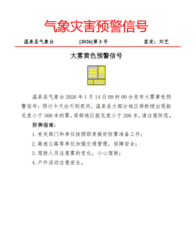 气象灾害预警信号(2026第3号)