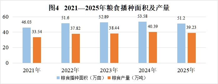 2025年全县粮食作物种植面积51.191万亩,同比下降4.4%。其中,小麦种植面积1.996万亩,同比下降64.2%;玉米种植面积48.83万亩,同比增长4.3%;马铃薯种植面积0.35万亩,同比下降70%;豆类0.015万亩,无同期数。