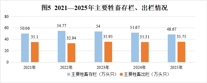 全县年末主要牲畜存栏48.67万头(只),同比下降5.8%。其中,羊41.4万只,同比下降6.5%;牛6.5万头,同比增长1.9%;猪0.77万头,同比下降23.6%。