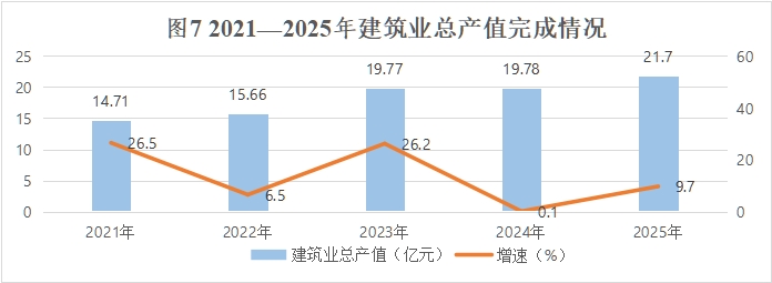 全年建筑业总产值21.7亿元,同比增长9.7%。