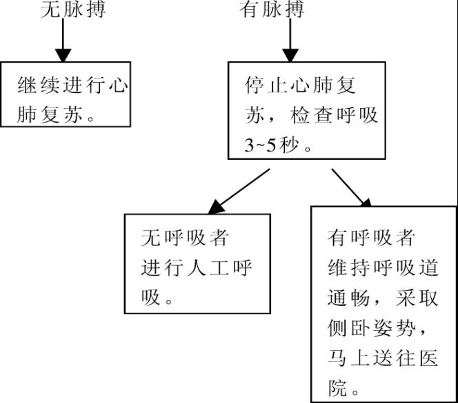 (5)看、听、感有无呼吸。看病人胸部有无起伏,以耳朵贴近病人口鼻,听有无呼吸声,以脸颊感觉有无出气。