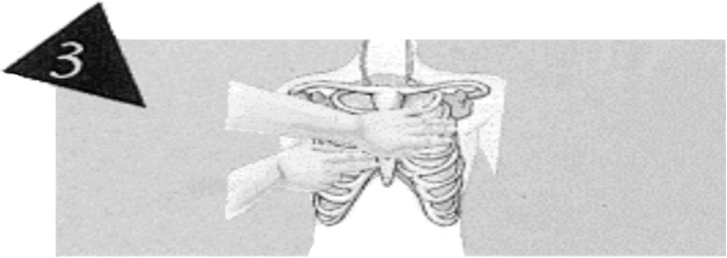 将两手的手指互扣或翘起,以免压迫肋骨造成骨折。